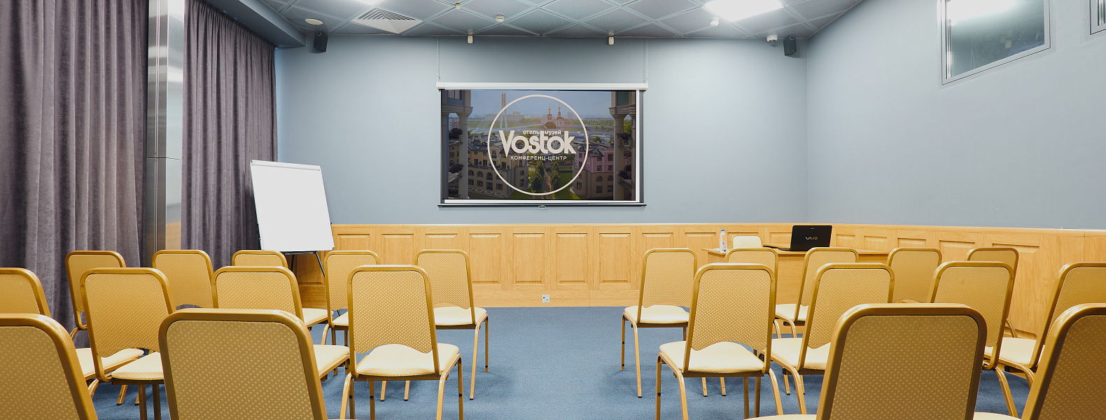 Зал прекрасно сочетает функциональность и стиль, превращаясь в удобное пространство для продуктивной работы и плодотворного общения. Оборудован необходимой техникой для демонстрации презентационных материалов, что позволяет решать организационные вопросы и достигать поставленных целей.